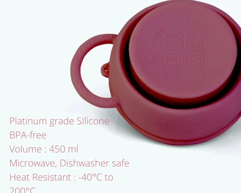 - Microwave safe, Dishwasher safe and Steriliser safe.  Platinum silicone is   resistant to extreme temperatures which makes it safe to be used in a microwave without the risk of it leaching into the food, unlike plastic. It can be easily cleaned in a dishwasher or a boiler.