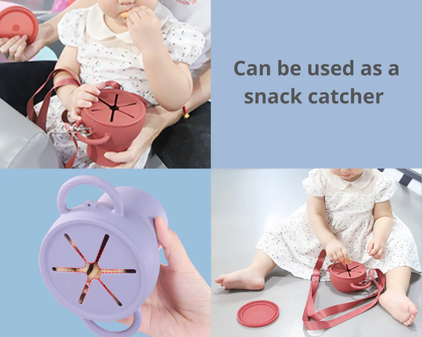 - It can be used as a sippy cup or as an anti-spill snack catcher.