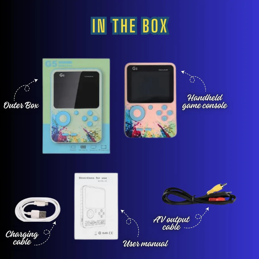 Step back into the golden age of gaming with the G5 500-in-1 Retro Video Game Player. Packed with 500 built-in old-school games, this compact handheld console brings hours of nostalgia to your fingertips—no downloads or internet required.