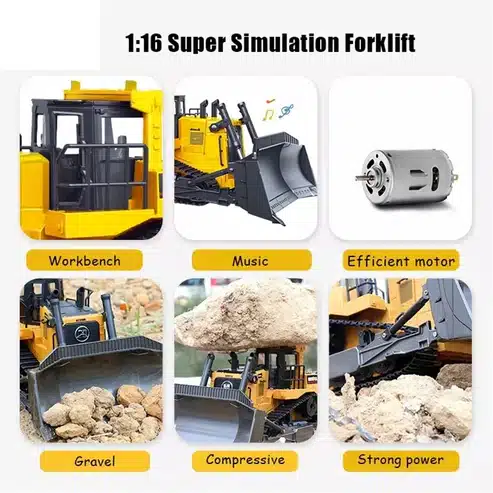 This HUINA 1554 1:16 RC Bulldozer (2025 Model) is a realistic and high-performance remote-controlled construction vehicle. With its precise controls and powerful motors, it can easily move and lift heavy materials and debris, making it perfect for both indoor and outdoor construction projects. Get the job done efficiently with this durable and agile bulldozer.