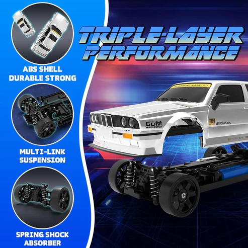 With its sturdy metal frame and realistic BMW E30 design, the Whoosh RC car is perfect for car enthusiasts of all ages. Its 1:16 scale and gyro technology allow for precise control and smooth drifts at high speeds of up to 50km/h. With 4-wheel drive, this car is a must-have for any RC race.